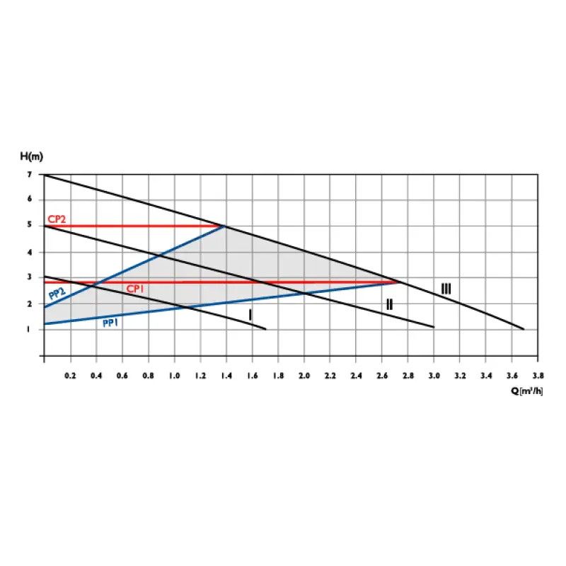 - Two Proportional Pressure Operating Modes (PP1 and PP2): Adjust the pump operation in proportion to flow rate changes, ensuring optimal performance based on system demands.