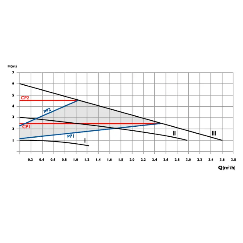 - Two Proportional Pressure Modes (PP1 and PP2): The pump adjusts its operation in response to pressure differences, proportionate to the flow rate.