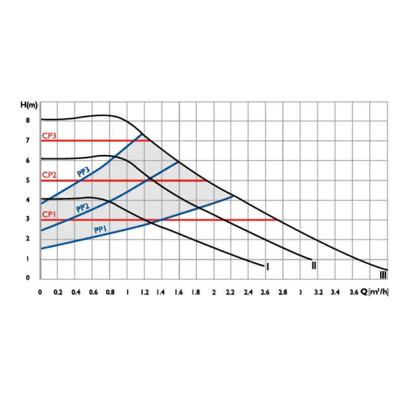- Three Constant Pressure Modes (CP1, CP2, CP3): Ideal for systems with underfloor heating and minimal flow rate changes.