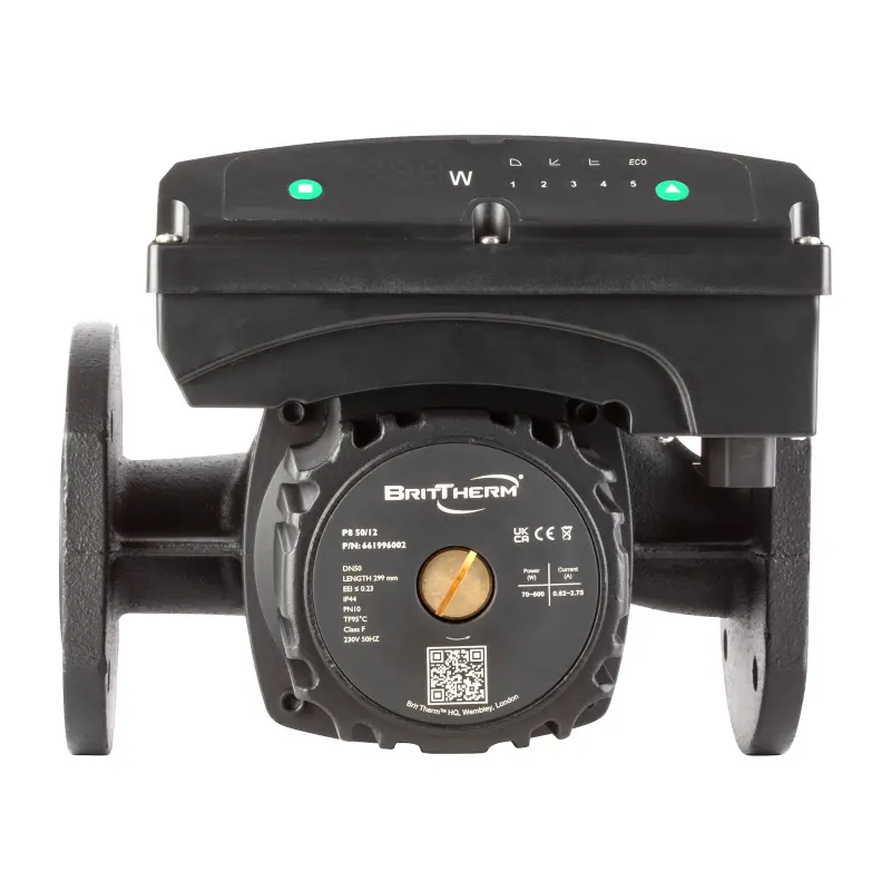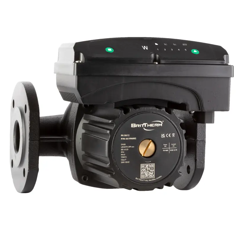 The P8 Series Pumps are heavy-duty flanged pumps designed for commercial use, featuring permanent magnet and compact rotor technology for quiet operation and low power consumption. These pumps offer 16 automatic operation modes and are suitable for various commercial heating systems.
