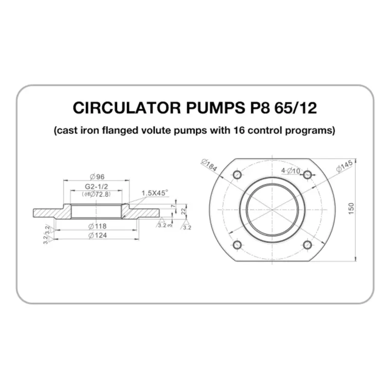 The P8 Series Pumps are heavy-duty flanged pumps designed for commercial use, featuring permanent magnet and compact rotor technology for quiet operation and low power consumption. These pumps offer 16 automatic operation modes and are suitable for various commercial heating systems.