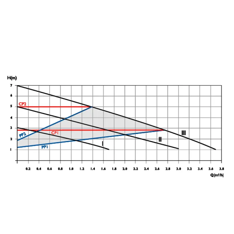 - Two Proportional Pressure Operating Modes (PP1 and PP2): Adjust the pump operation in proportion to flow rate changes, ensuring optimal performance based on system demands.